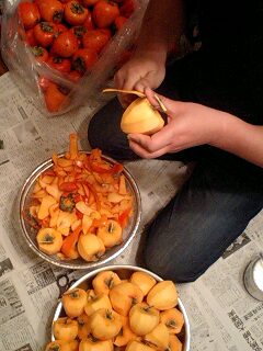 たくさんの柿で干し柿作りに取り掛かりました。