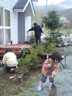 今日はスタッフ一同庭仕事 |